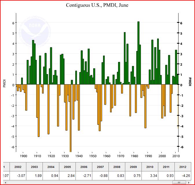 — Contiguous US Palmer Modified Drought Index (PMDI) for June 1895-2012 —